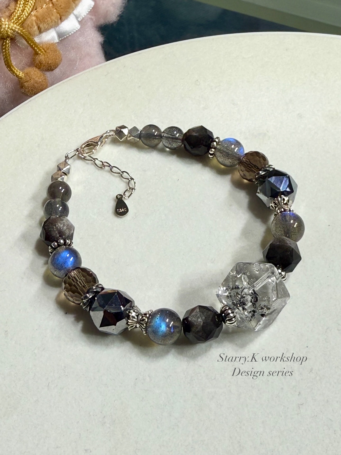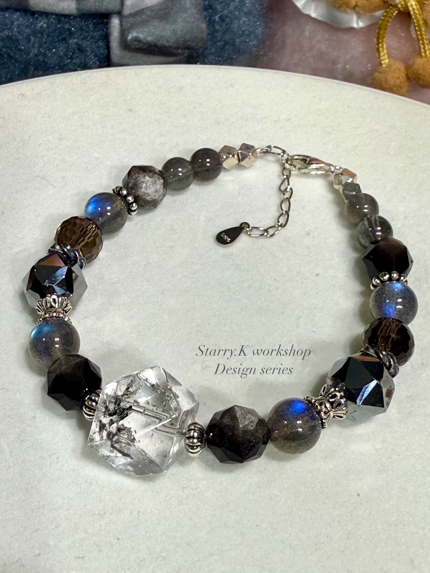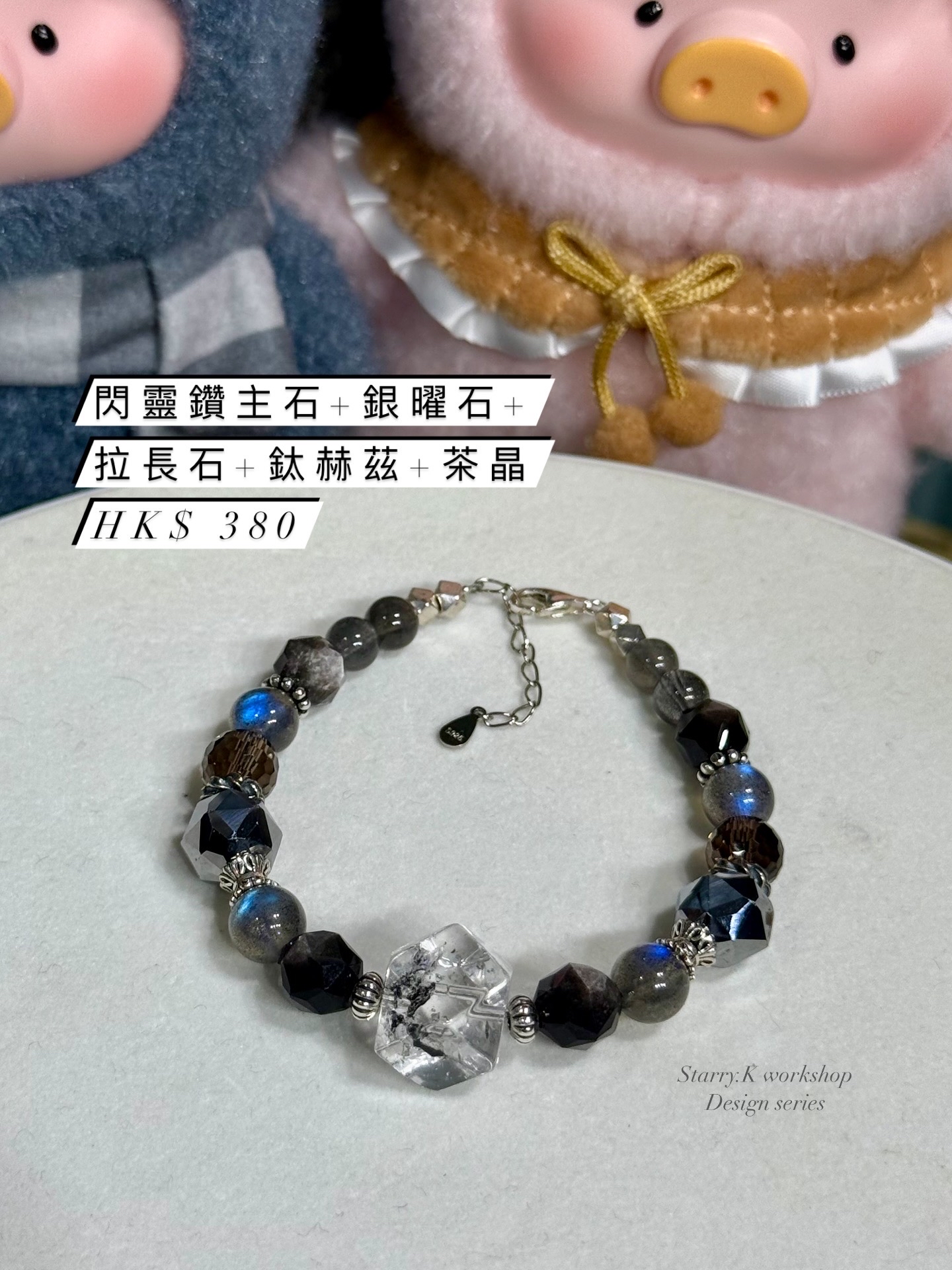 全新手鏈款 - 閃靈鑽主石+銀曜石+拉長石+鈦赫茲+茶晶