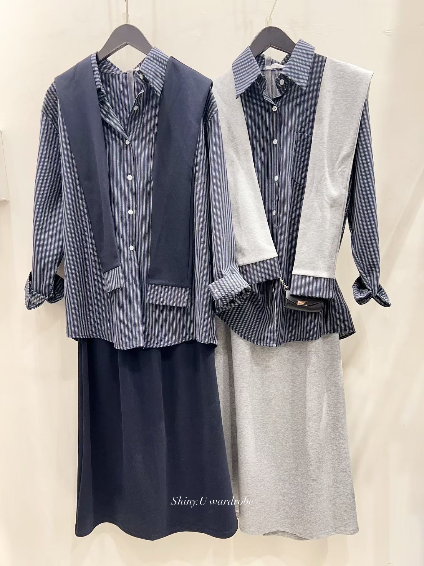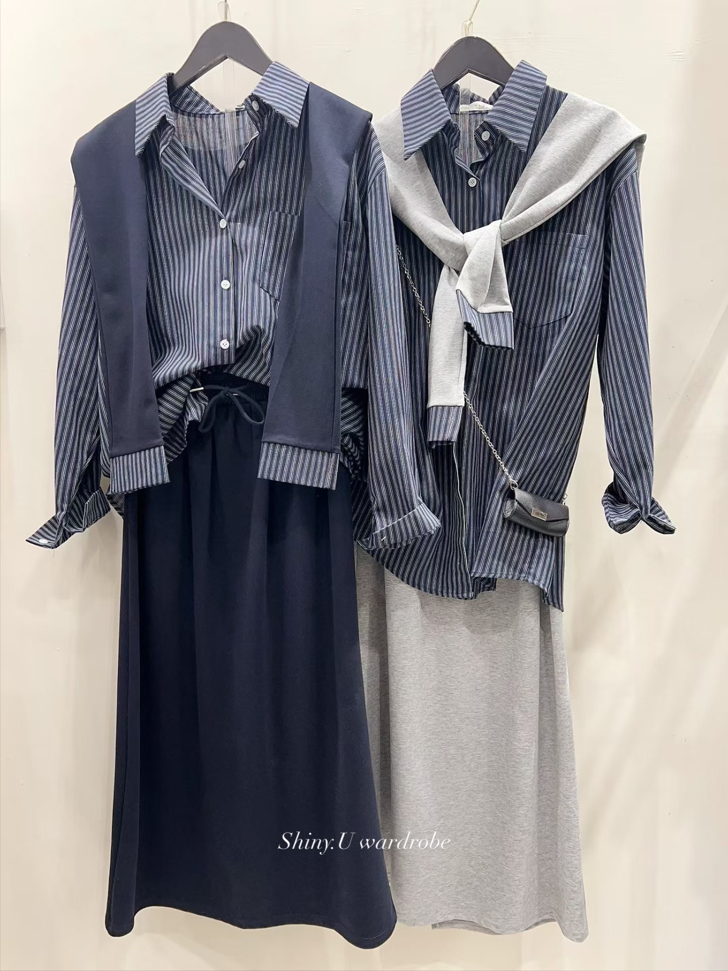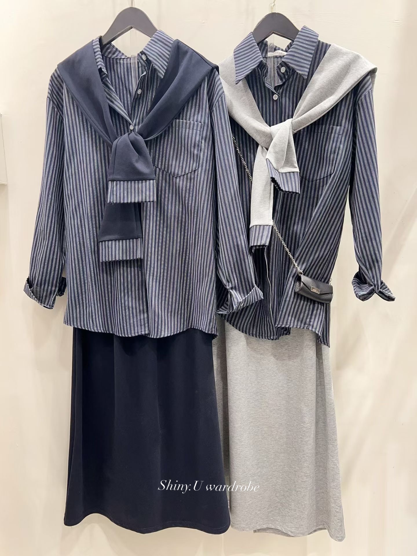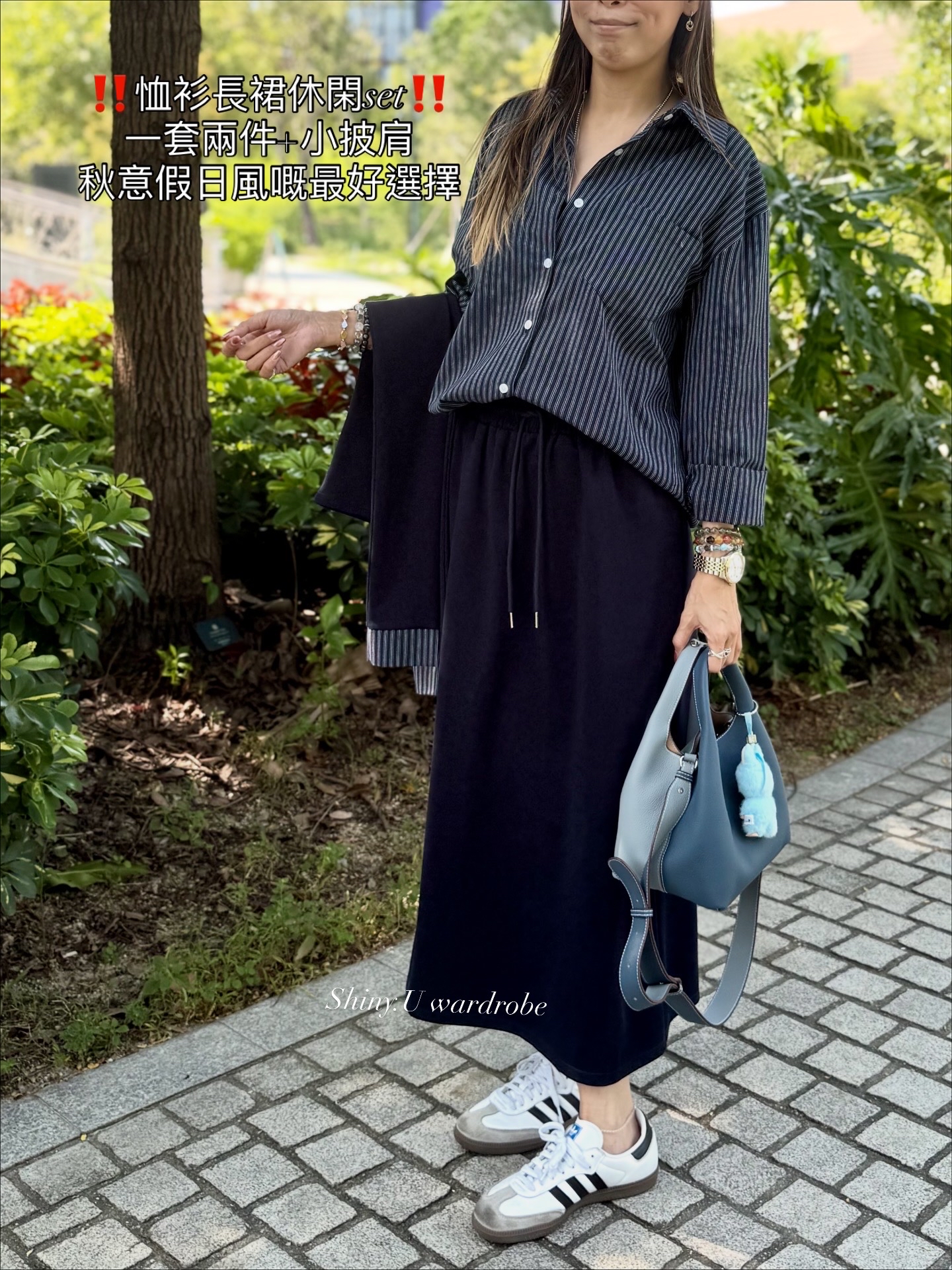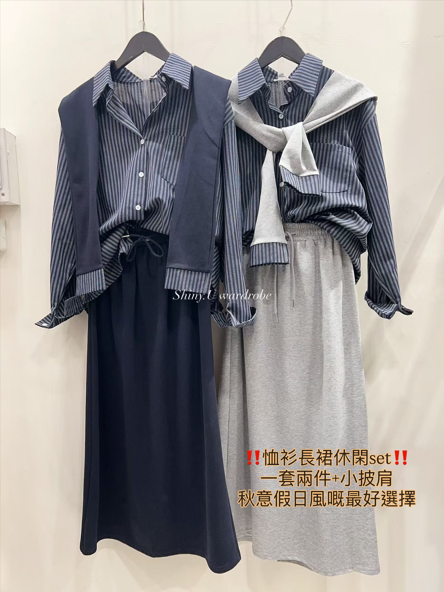 ‼️恤衫長裙休閑set‼️ 一套兩件+小披肩 秋意假日風嘅最好選擇