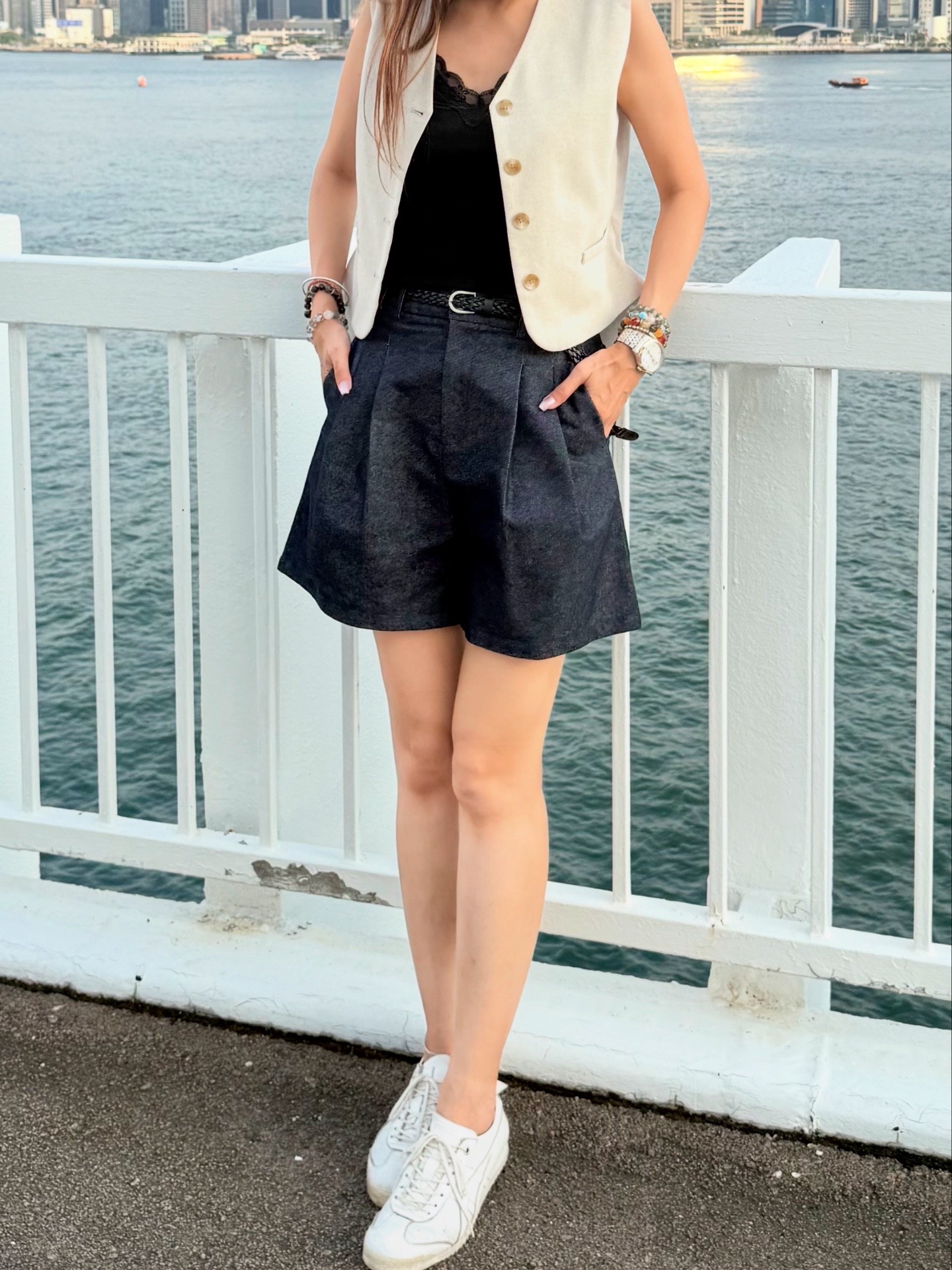 深藍色A字短褲(包腰帶)