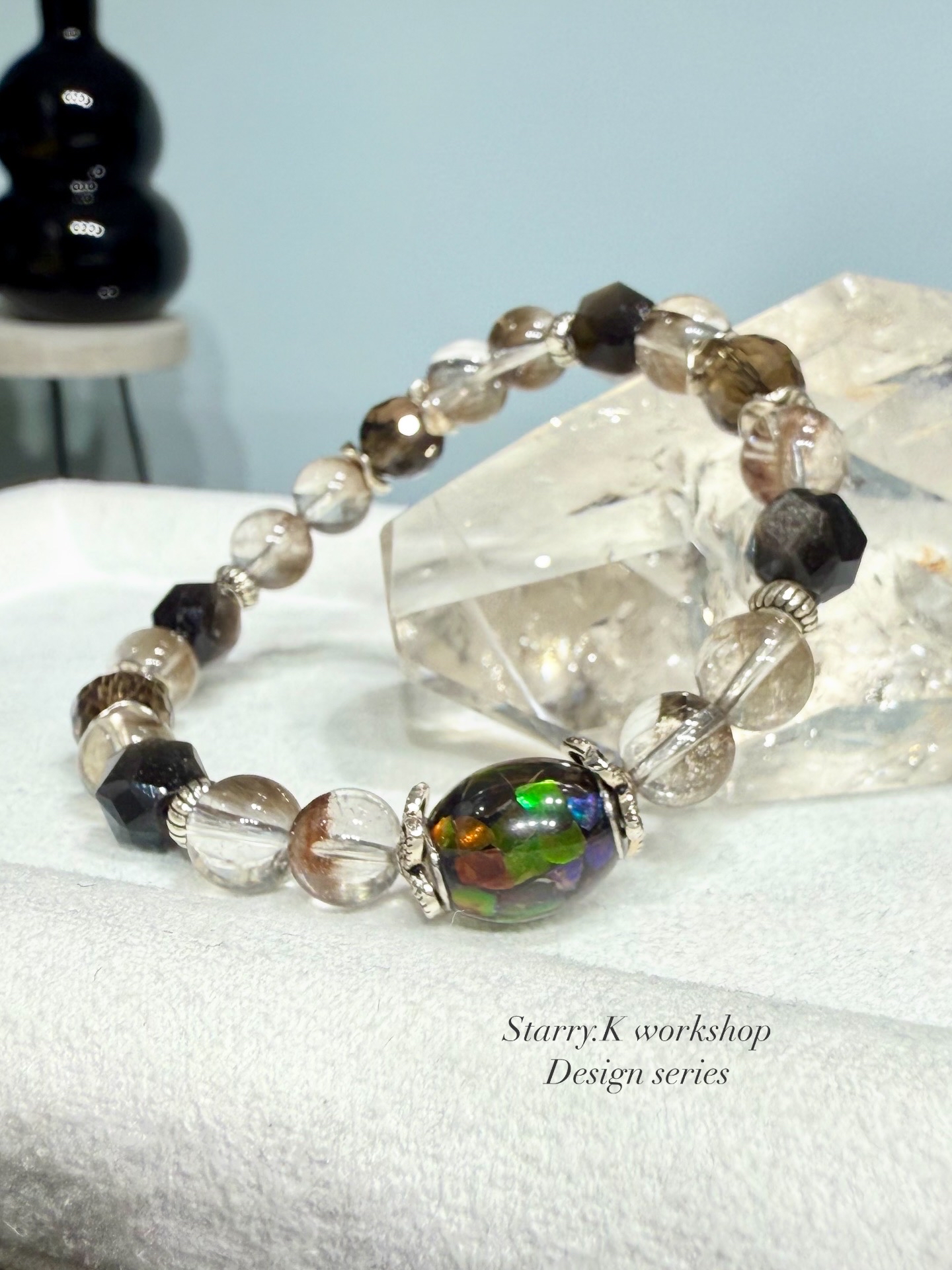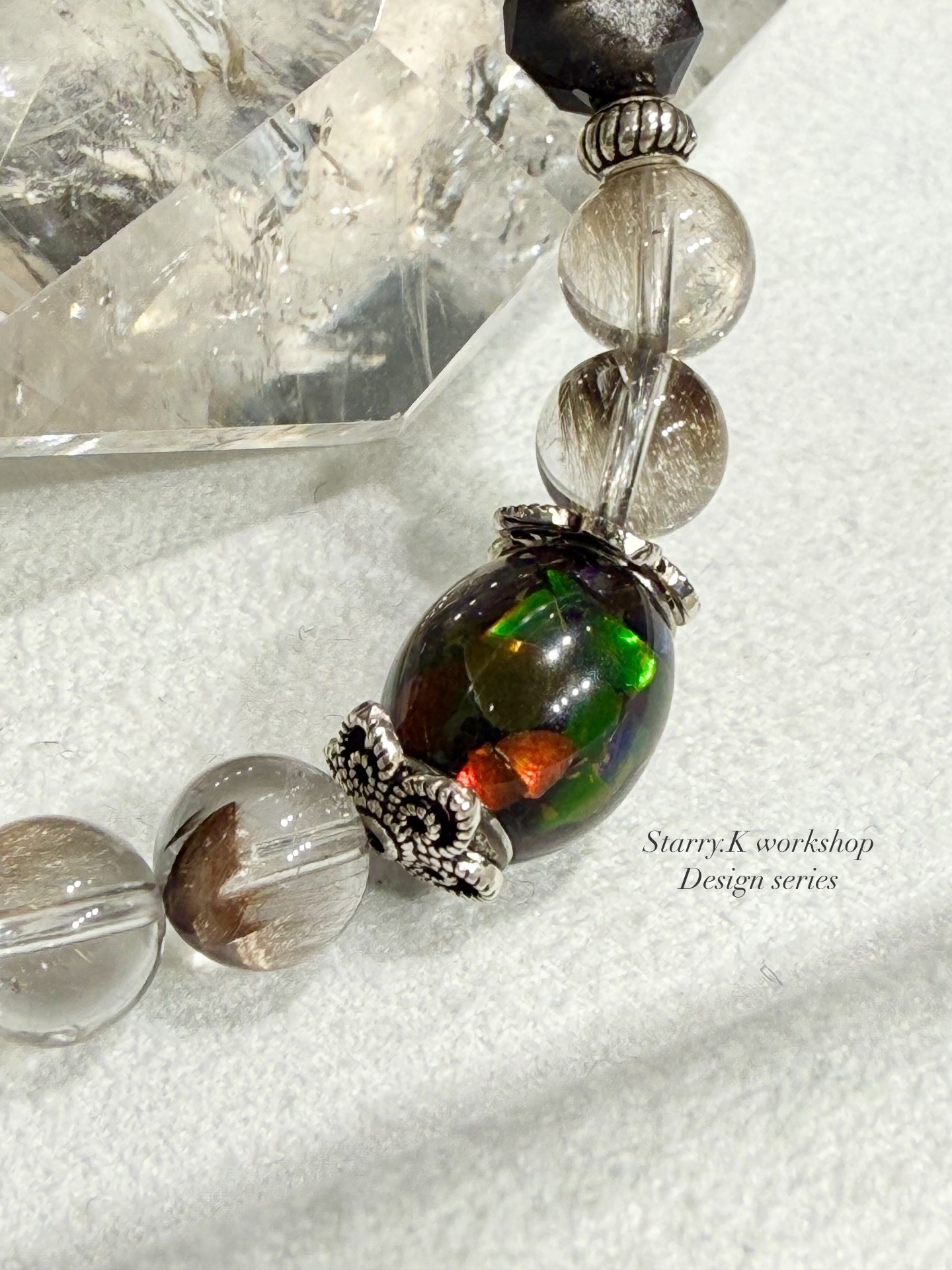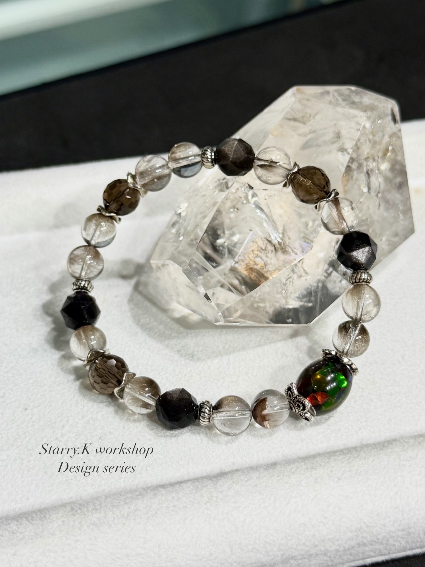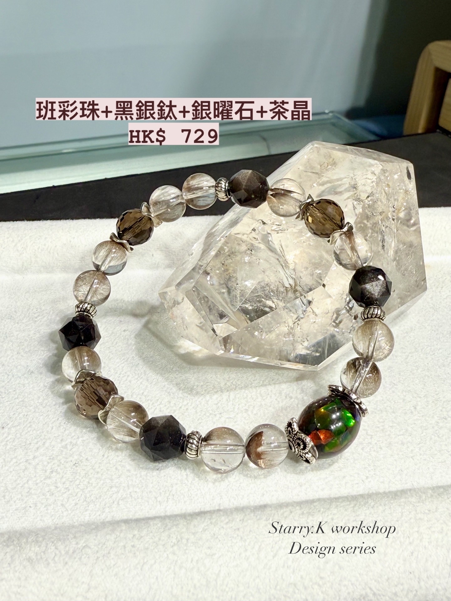 New design mix - 班彩珠+黑銀鈦+銀曜石+茶晶